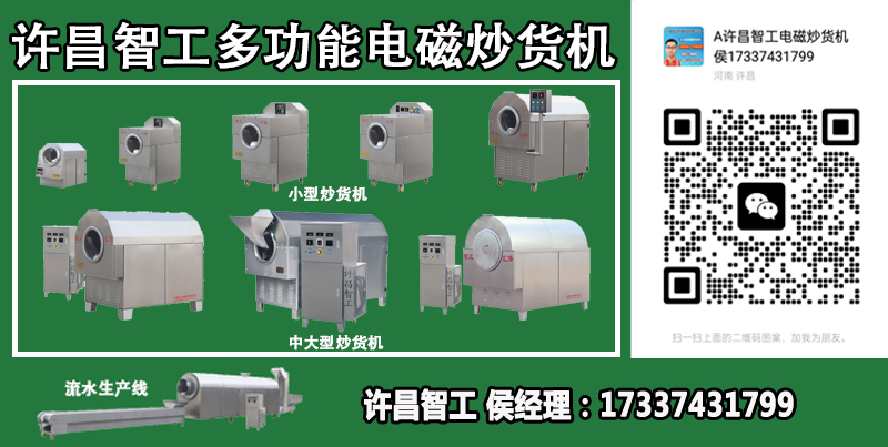 三、操作簡便:電磁炒貨機是采用智能控制,操作人員根據需要可自由設定,因此安全性高(無炒糊和無火災現象),炒制品質一致,換班換人都不影響炒制品的品質。