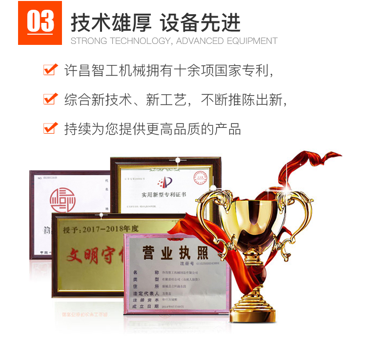 許昌智工機(jī)械制造有限公司全體員工積極貫徹落實(shí)“科學(xué)發(fā)展觀”精神,團(tuán)結(jié)一心,眾志成城。以精研精工,精心精致,精益求精的質(zhì)量理念,不斷提升產(chǎn)品的性能指標(biāo)。以誠(chéng)信、厚德、創(chuàng)新、責(zé)任的企業(yè)精神。為“中國(guó)制造”向“中國(guó)智造”轉(zhuǎn)變而努力,為打造工業(yè)強(qiáng)國(guó)而奮斗。
