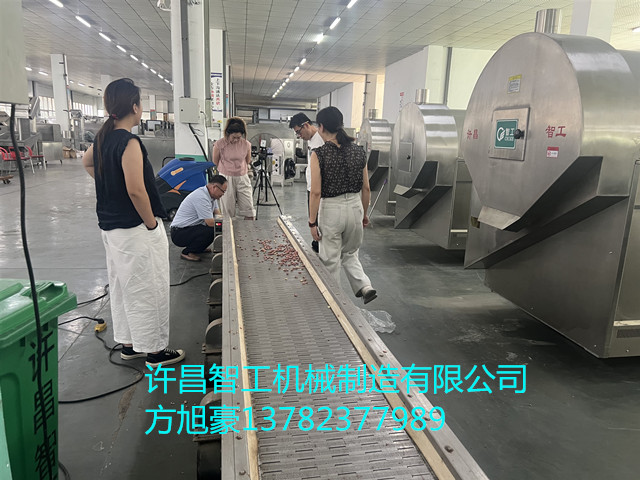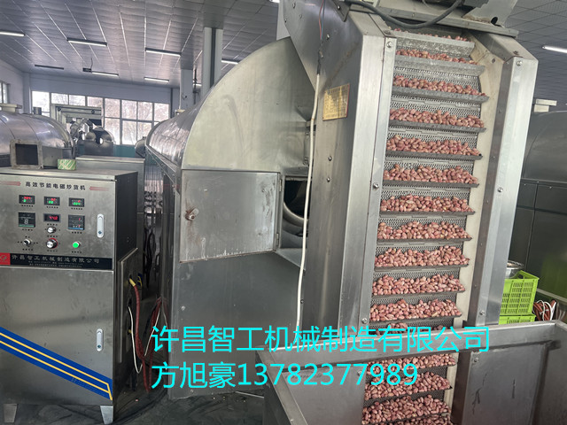 許昌智工八米電磁流水線包含上料炒制篩選冷卻流水線操作,時產(chǎn)五香花生米1200斤,炒出來的花生米色澤漂亮,不脫皮,不變色,口感均勻。
