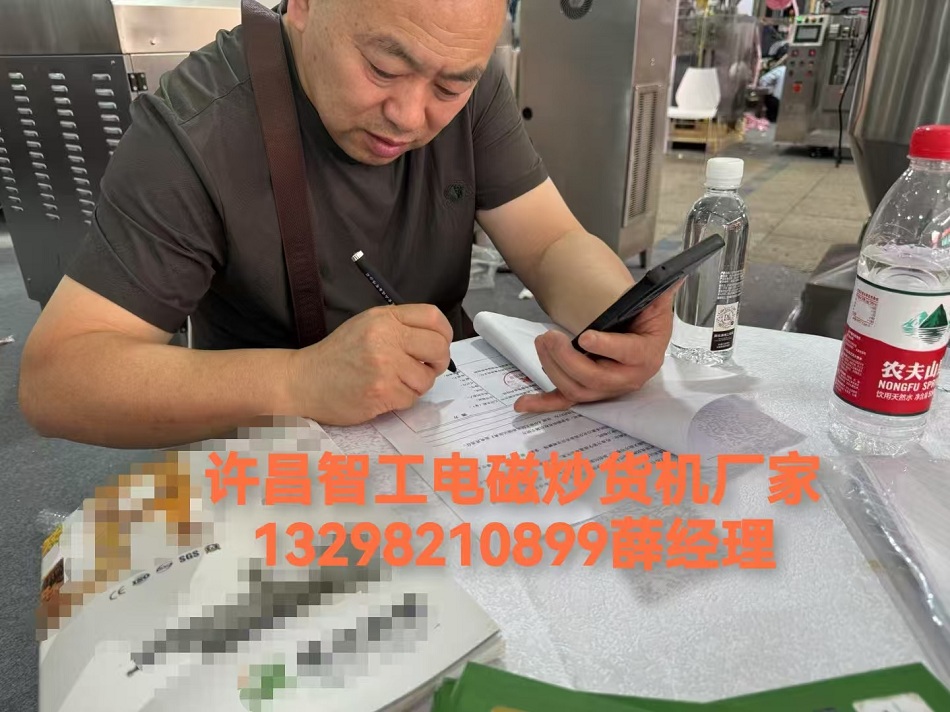 展會現(xiàn)場客戶定購中型炒貨機(jī)。在食品加工行業(yè)中,炒貨的品質(zhì)很大程度上決定了產(chǎn)品的市場競爭力。炒貨設(shè)備作為關(guān)鍵一環(huán),其性能優(yōu)劣直接影響著炒貨的口感、色澤以及生產(chǎn)效率。經(jīng)過多方考察與實(shí)踐驗(yàn)證,如果您正在為選擇電磁炒貨機(jī)而躊躇,那么許昌智工的電磁炒貨機(jī)無疑是您的不二之選。