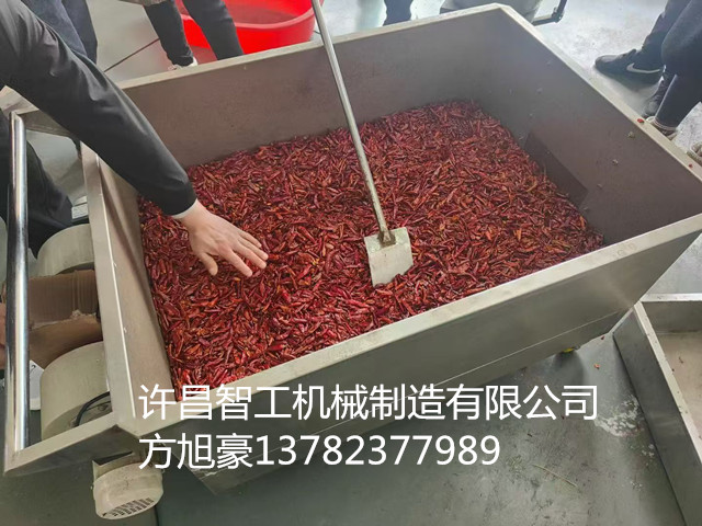 2026年3月16日,客戶帶50斤辣椒來廠試機電磁炒貨機炒制。