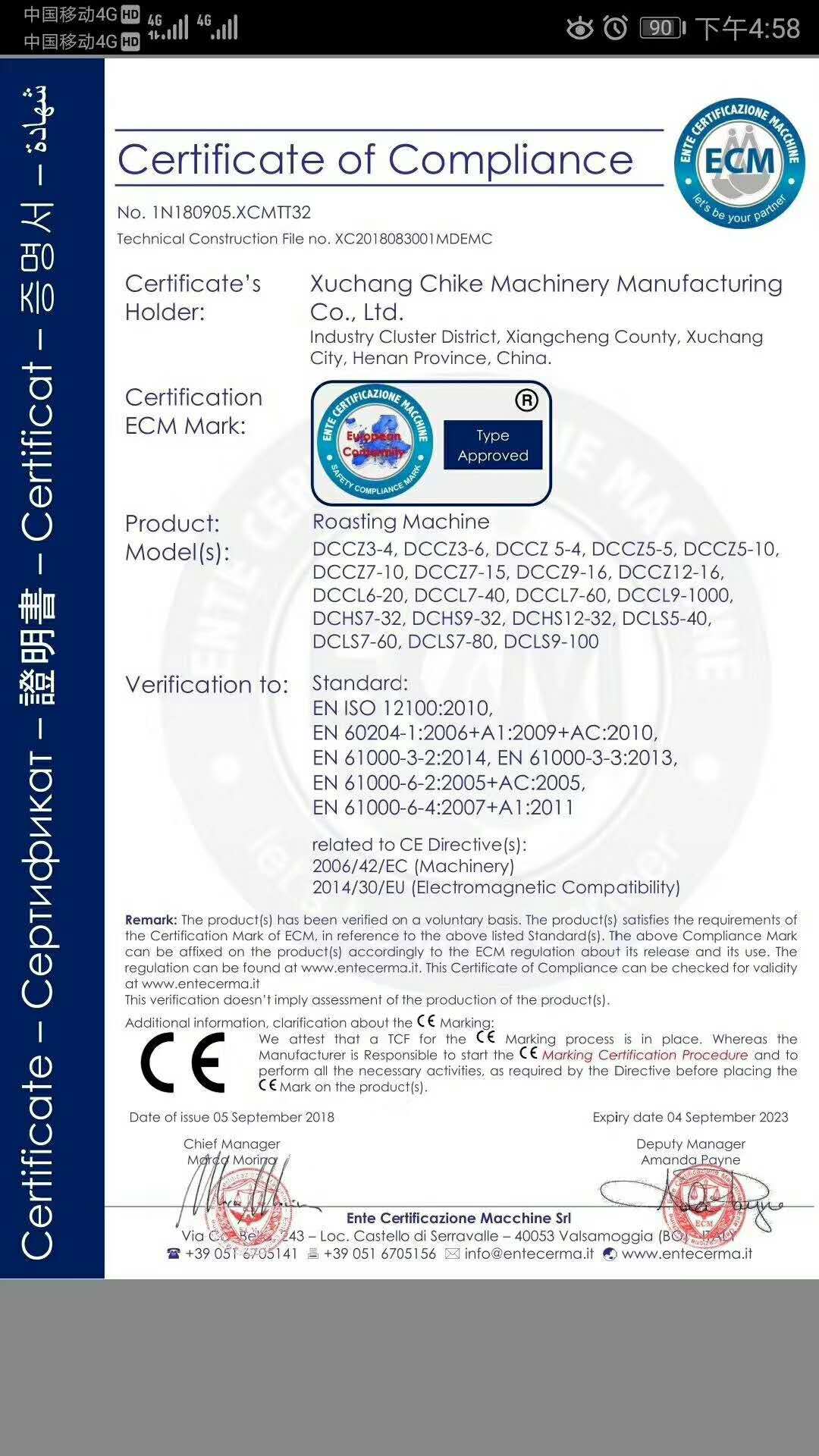 許昌智工產(chǎn)品已經(jīng)通過歐盟CE認(rèn)證,所有產(chǎn)品已經(jīng)通過安全,衛(wèi)生,環(huán)保和消費者保護(hù)等一系列歐盟標(biāo)準(zhǔn)要求。